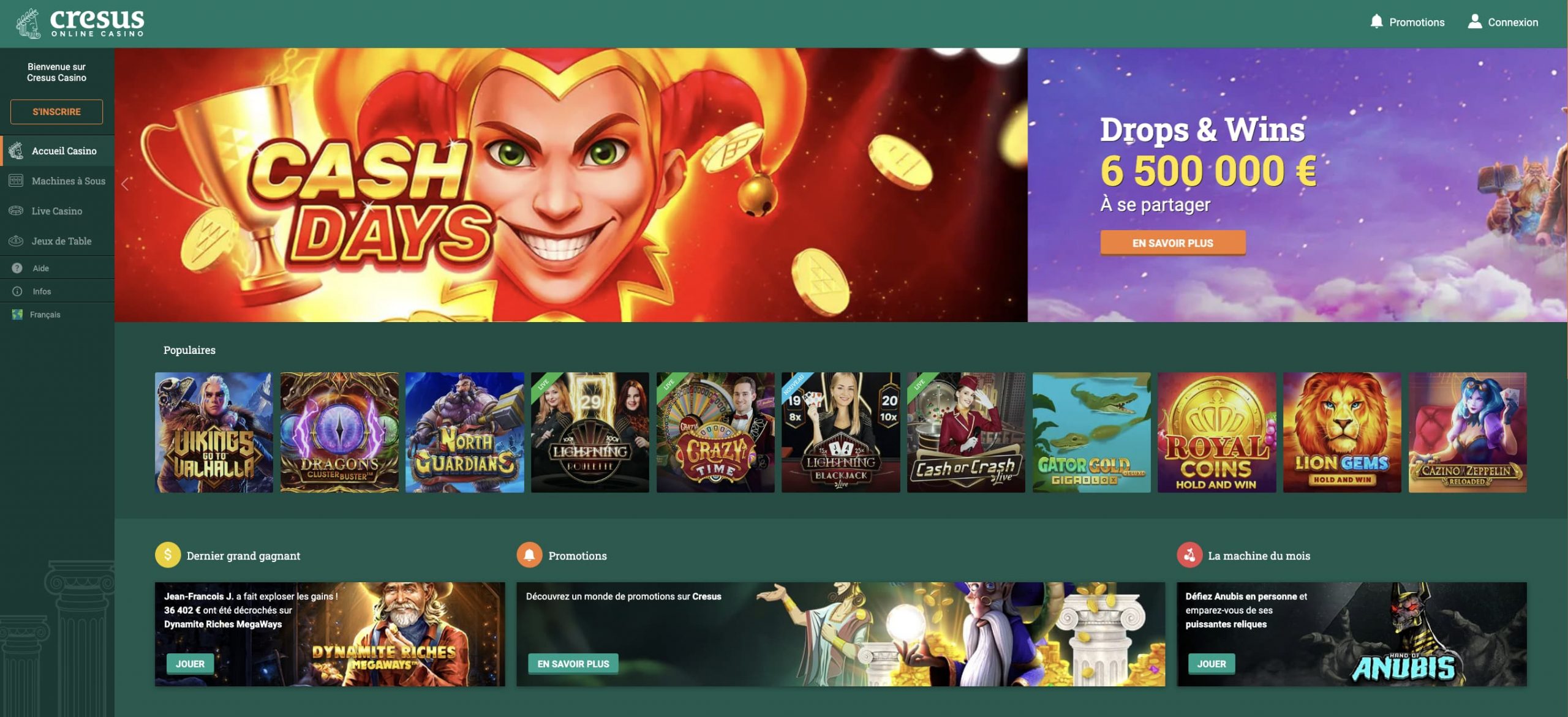 Cresus Casino est un site de casino en ligne influencé par l’ancien roi Crésus de Lydie. Le style historique du site contraste avec son interface utilisateur et ses options de jeu instantanées contemporaines. Les joueurs du Cresus Casino en ligne trouveront des jeux de fournisseurs tels que Play’n GO, Advancement PC Gaming, Betsoft et d’autres grands noms du secteur proposant des jeux comme les machines à sous, les jeux de table en direct et bien plus encore. La plupart de ces jeux sont également accessibles sur la plupart des smartphones et tablettes. Le site du Cresus Casino est certifié par le gouvernement de Curaçao.